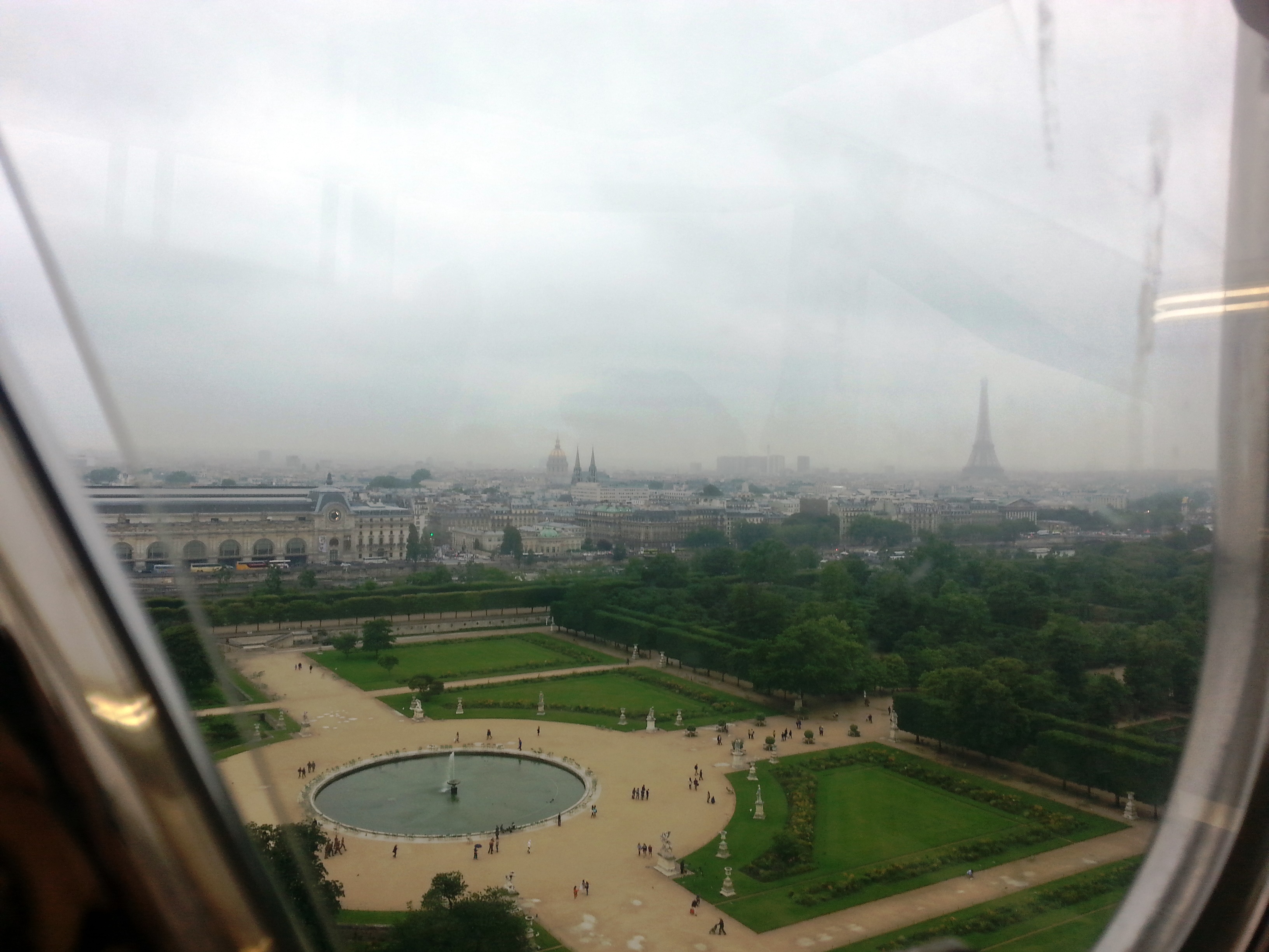Como seguía lloviendo, nada más salir del museo y recorrer la Rue Rivoli a cubierto, decidimos subir a la Gran Noria, junto a la plaza de la Concordia y los jardines de Tullerías. Qué bien hicimos. Vimos toda la ciudad desde las alturas. Es, sin duda, un mirador excepcional. Además de los imprescindibles de París, contemplar todos los tejados y áticos típicos de París es una estampa de lo más literaria.