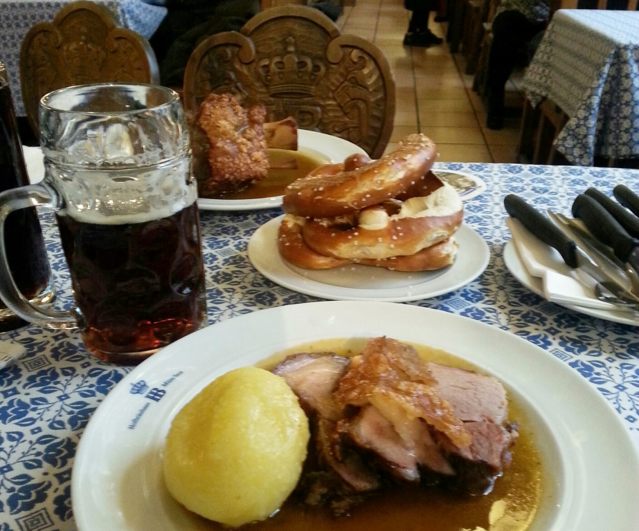 Dos de nuestras comidas tuvieron como escenario dos cervecerías indispensables que, además de a turistas, albergaban a un gran número de munichenses. Por un lado, el restaurante Augustiner Bau Mundhen en la bulliciosa peatonal. La gente comparte mesa, las originales lámparas dividen los salones y te trasladan a otros tiempo, y los “pretzel” gigantes nos regresaban a Nueva York y por fin dimos buena cuenta de las primeras salchichas…