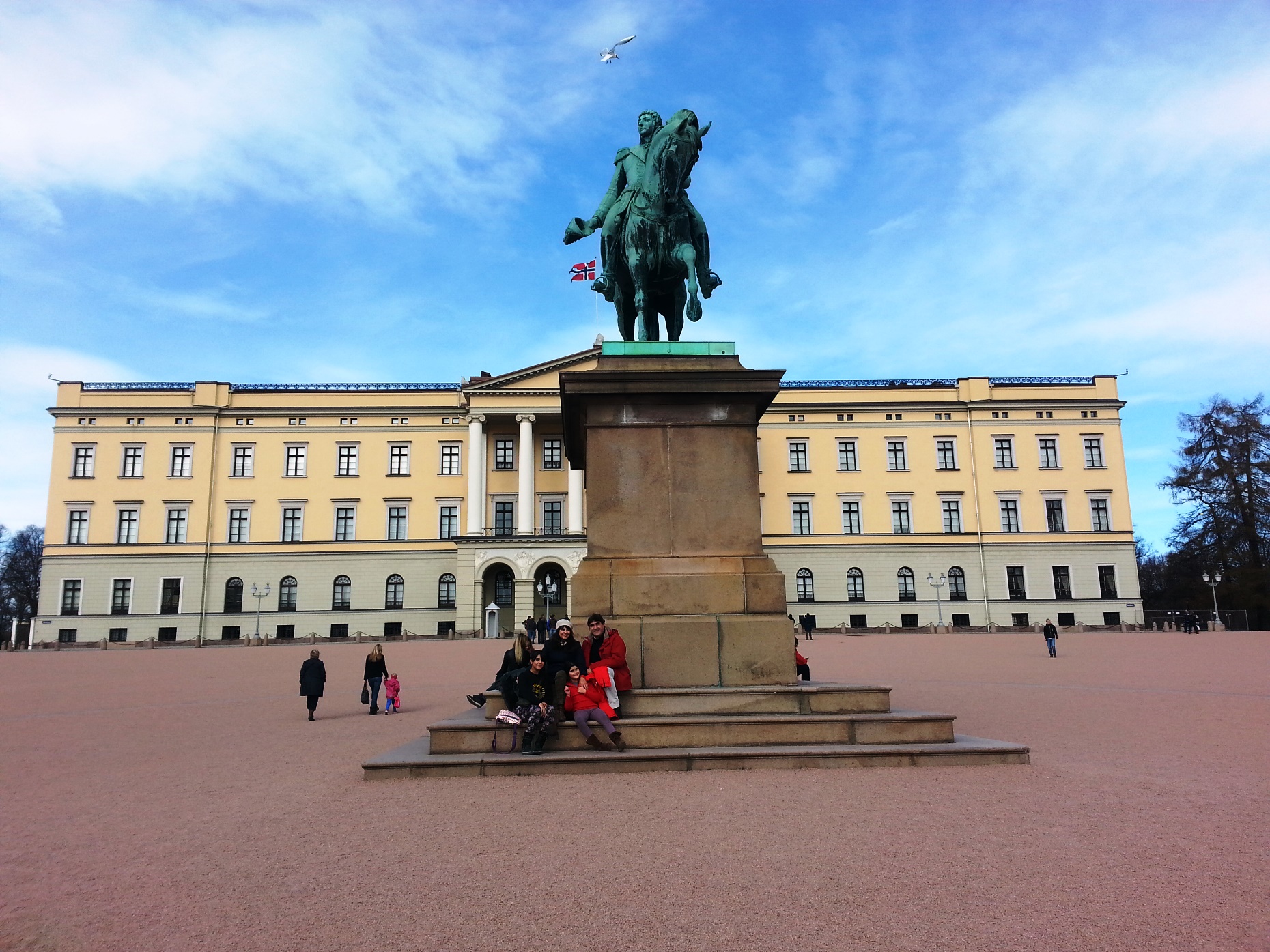 Nos hospedamos en un hotel céntrico y por suerte el primer día lo dedicamos a recorrer la capital de Noruega, y digo por suerte porque nuestra pequeña por la noche se lesionó y el resto de días los cuatro a bordo incorporaron las muletas a la escapada. El hotel está muy cerca del Museo del dramaturgo y poeta noruego, Henrik Ibsen, y aprovecho para hablarles a mis hijas de “Casa de muñecas”, obra que marcó una época por reivindicar sobre el telón la dignidad de las mujeres consideradas por los hombres como muñecas sin opinión ni decisión. Literatura y viajes, una motivación más para hacer kilómetros… Desde allí, cruzamos, y ante nosotros se erige el Palacio Real.
